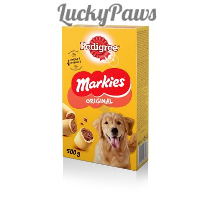 Хрупкави бисквити пълни с аромат - PEDIGREE MARKIES костните ролца са хрупкави отвън и изключително вкусни отвътре. С Омега 3, който спомага за поддържането на по-добър живот, витамин Е, за да подпомогне естествената защита, минерали, включително калций, за да поддържа костите здрави. Идеален като награда по време на ежедневно обучение или като малка закуска между храненията. Без изкуствени оцветители или аромати.