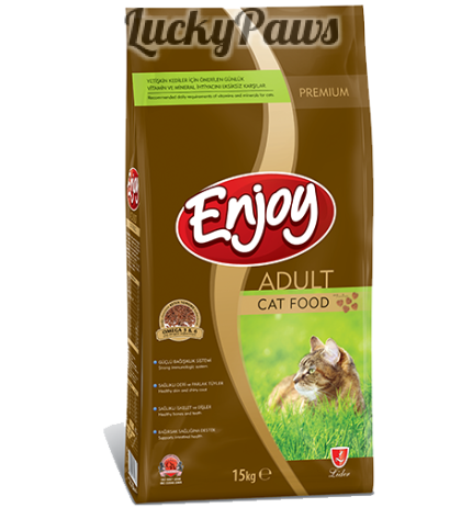 Enjoy Adult Cat Chicken е пълноценна храна за израснали котки от всички породи, съдържаща витамини и минерали, необходими за оптимално доброто развитие и състояние на вашата котка.