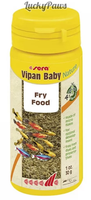 Sera Vipan Baby Nature е много подходяща за хранене на малките на живородки (хелери, плати, молинезии) и представлява идеална диета за всички рибки по-малки от 4 см. Ценните съставки с БИО ВИП формула (комплекс от витамини и минерали) и високо съдържание на лесносмилаеми протеини осигуряват здравословен и правилен растеж.