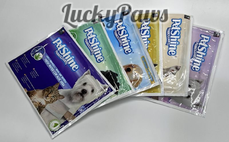 Ръкавицата Petshine е напоена с деликатен препарат без пяна, който не е необходимо да се изплаква. Материята е плътна, а количеството препарат позволява почистване дори на големи домашни любимци. Може да се използва често, в хигиената на вашия домашен любимец. С овлажняващи свойства. Ръкавицата Petshine поддържа козината на вашия домашен любимец чиста и парфюмирана, като я защитава и придава блясък, без да променя pH. Вътрешният филм на ръкавицата поддържа ръката суха и чиста. Отлично решение, за да го вземете навсякъде и да можете да почиствате, когато е необходимо, разходки по плажа, на почивка, при пътуване. Много практична и лесна за използване.