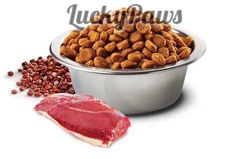 Състав: прясно обезкостено патешко (20%), дехидратирано патешко (18%), скорбяла от грах, пилешка мазнина, семена от киноа (8%), сушени цели яйца, дехидратирана херинга, рибено масло (от херинга), сушени червени боровинки (2.5%), лайка (2.5%), фрукто-олигозахариди, екстракт от мая (източник на мано-олигозахариди), псилиум, калциев карбонат, калиев хлорид, суха бирена мая, натриев хлорид, глюкозамин, хондроитин сулфат, екстракт от невен (източник на лутеин).