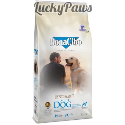 BonaCibo Chicken, Anchovy & Rice Adult - Пълноценна храна за израснали кучета с пилешко,аншоа и ориз 15 кг