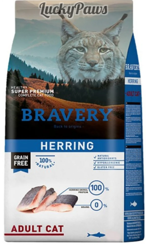Пълноценна супер премиум храна за израснали котки от всички породи с херинга. Bravery е изцяло натурална храна. Няма добавени изкуствени оцветители, подсладители или консерванти! Поради отсъствието на каквито и да е зърнени култури и наличието на единствен първокласен протеин от херинга, храната е хипоалергенна. Благодарение на балансираните си натурални съставки, Bravery осигурява идеална грижа и цялостно укрепване на тялото.