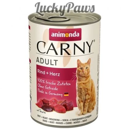Animonda Carny Adult с говеждо и сърца е висококачествена мокра храна, специално разработена за израснали котки на възраст от 1 до 6 години. Тя осигурява всички основни хранителни вещества, необходими за здравословния живот на вашата котка.