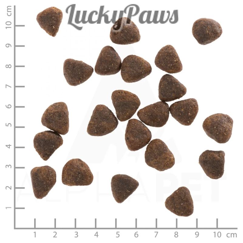 Посоченото количество е ориентировъчно. Дневната доза трябва да се адаптира спрямо възрастта, породата и активността на кучето. Винаги осигурявайте прясна вода на вашия домашен любимец.
