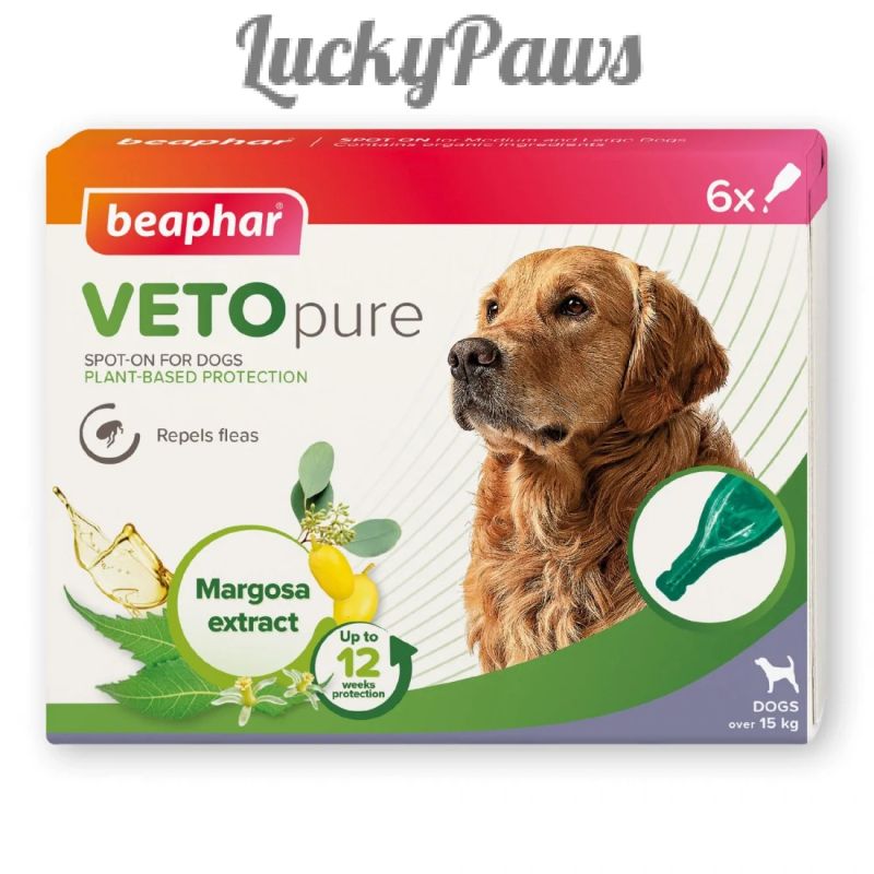 Beaphar VETOpure Spot-On за кучета над 15 кг съдържа натурални растителни екстракти, включително масло от маргоза и евкалипт цитриодора за отблъскване на бълхите от кучетата за до 4 седмици. За най-добри резултати използвайте от самото начало на топлия сезон!