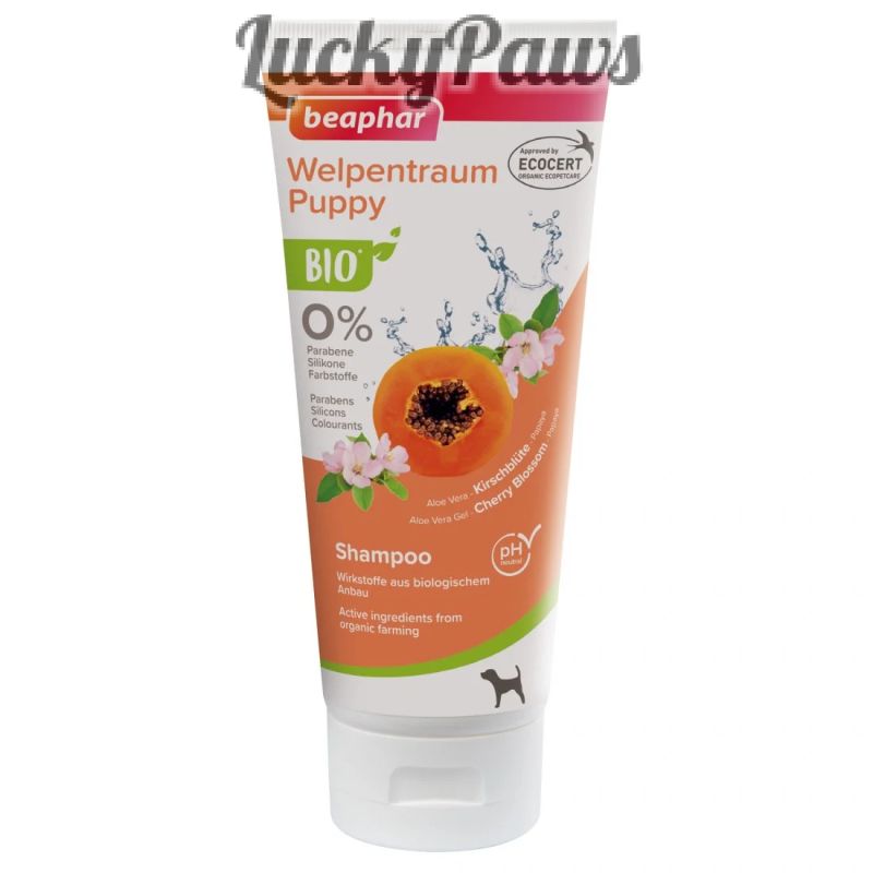 Beaphar Bio Shampoo Puppy 200мл - с био цвят от череша, алое вера, папая, неутрално pH, без парабени, алкохол, силикон