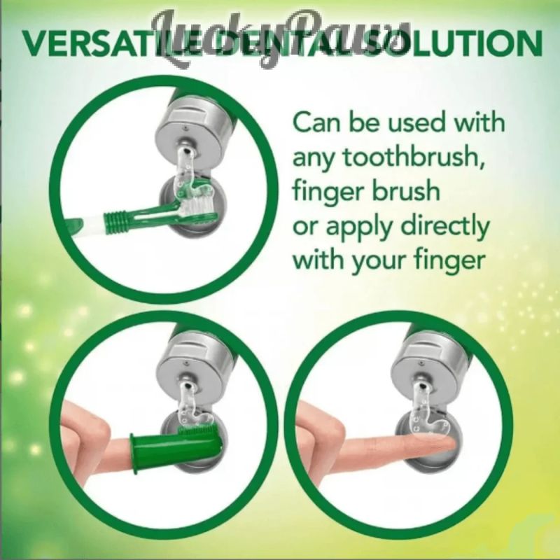 УКАЗАНИЯ ЗА УПОТРЕБА: Нанесете количество с размер на грахово зърно върху силиконовата четка и внимателно изчеткайте зъбите на кучето бавно напред-назад. За най-добри резултати мийте зъбите на вашето куче няколко пъти седмично и не позволявайте храна или вода 30 минути след миенето.