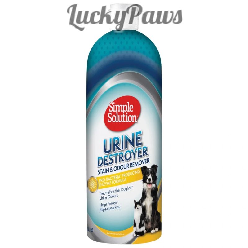 Simple Solution Urine Destroyer е специално формулиран, за да разгражда протеините в урината, които са скрити във вашия килим. Когато се използва директно, неутрализира миризмата от урината, вместо само да я замаскира. Оцветява урината. Безопасен е за употреба върху килими, тапицерия, бетон и всички други издържащи на вода повърхности.